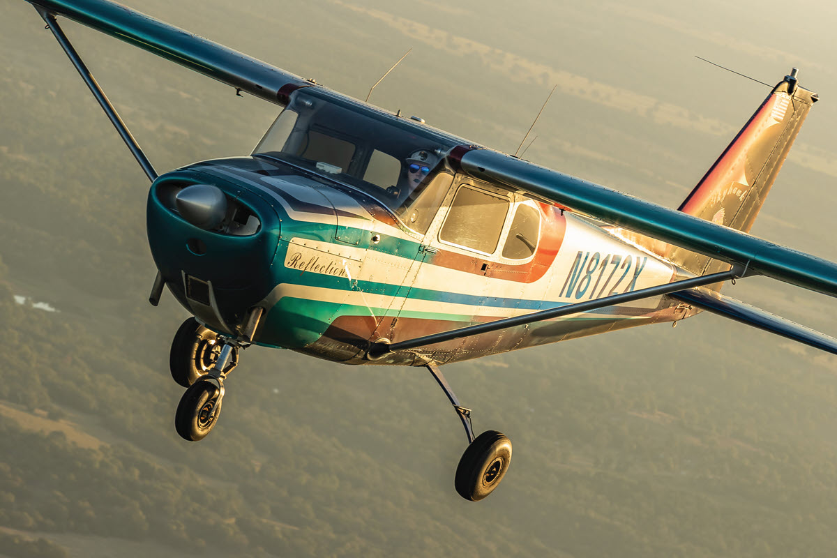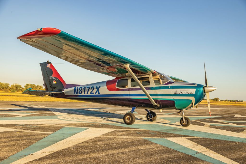 Cessna 172s are common enough. But when Conner Vital’s 1961 Cessna 172B glides onto the runway, it makes a big splash. It’s nicknamed “Reflections” after the shop that gave Conner’s airplane its eye-catching paint job (and painted the shop’s name on the cowl). Conner explained, “We purchased the airplane with the paint scheme. The old owners bought it from a four-way partnership and one of the partners owned a body shop. His buy-in was to repaint the airplane. I love the way the aircraft looks. It stands out! I love unique aircraft schemes.”